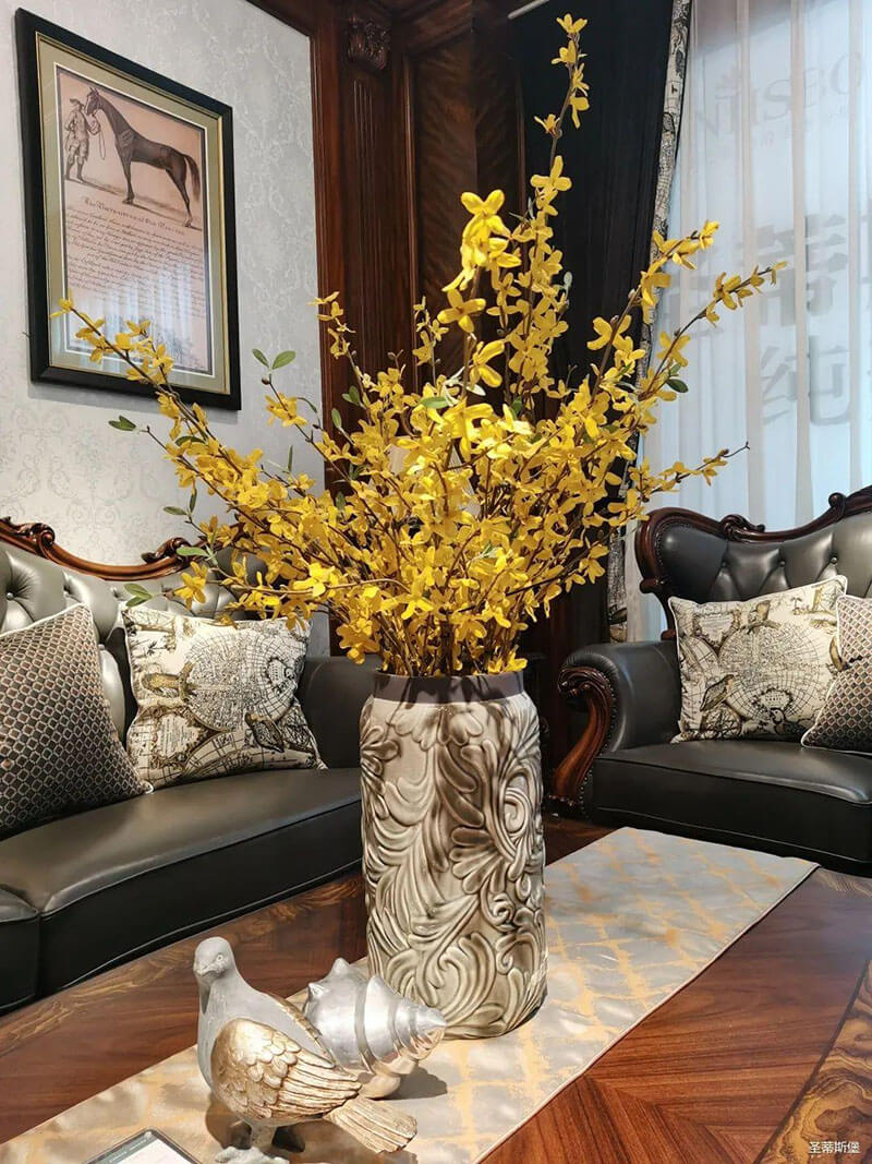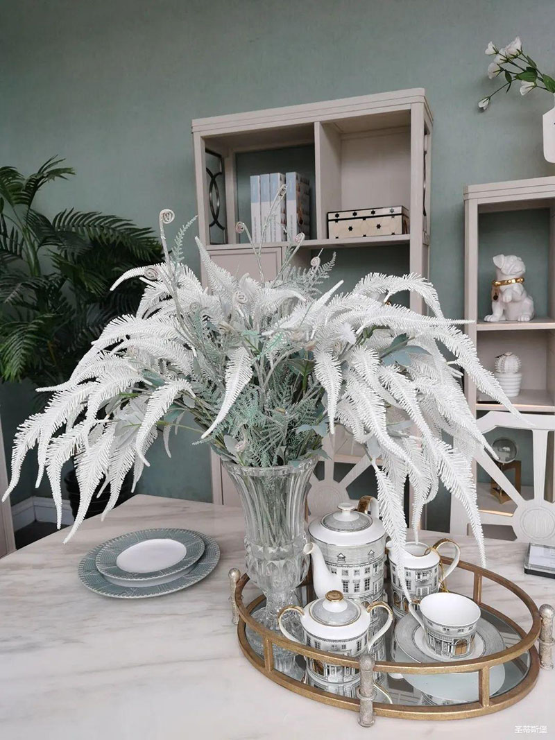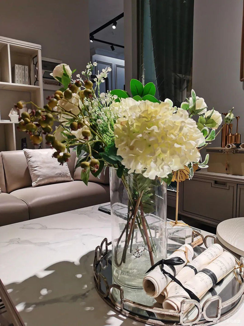 3.輕奢的配飾也需邀來似錦繁花相稱。色彩跳脫的植物更為亮眼,讓自然界的色彩與姿態(tài)應(yīng)和空間之間的協(xié)調(diào),傳遞空間與情感的共鳴。