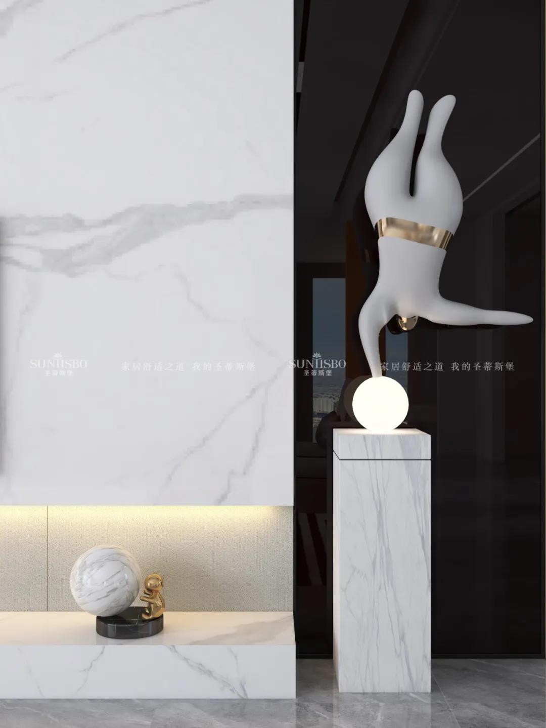簡奢餐桌與玻璃大立柜,將空間簡化,帶來了純粹的空間視覺效果。金色鑲邊的點綴,為這份純粹增添了奢華質(zhì)感。極簡玻璃定制柜體,拉開了大空間的開闊視野,光影交匯間,硬朗的氣質(zhì)與柔和的自然光產(chǎn)生了趣味的互動,為空間提供了更具藝術(shù)張力的奢享用餐體驗。