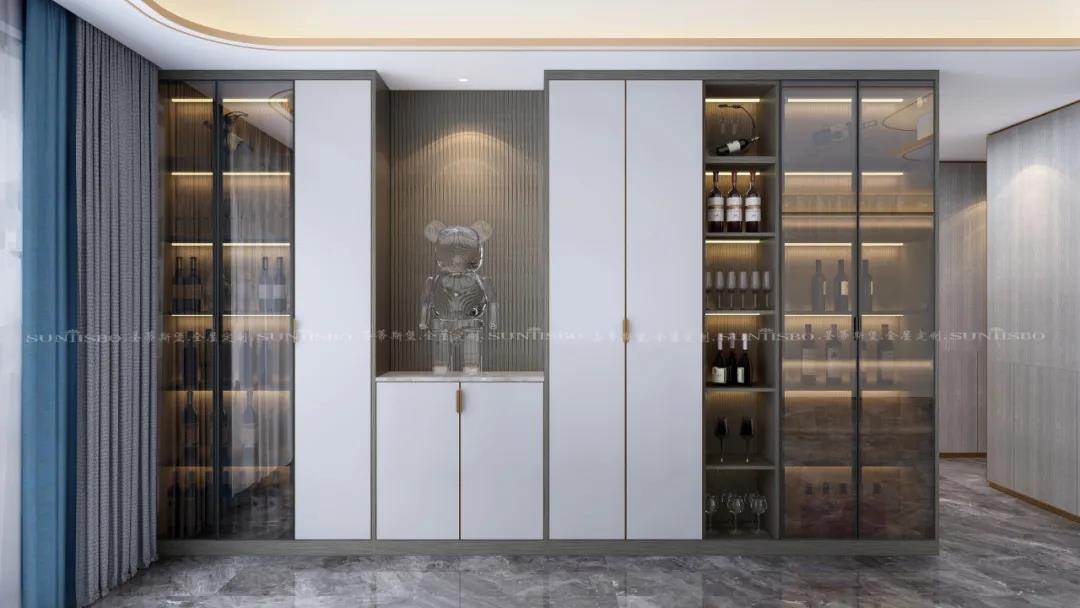 在細節(jié)設計之中,設計師以實木+紋理,營造一派簡約輕奢之感,看似沒有繁雜的元素修飾,卻讓家多了一份高級感。