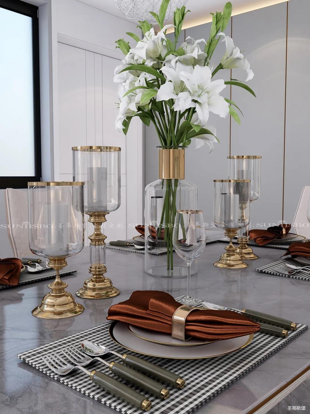 一束百合成了整個空間焦點,配套餐具是我和老公為新家精挑細選的,它讓用餐氛圍充滿了儀式感,讓我們在家的每一用餐時刻都像是在向?qū)Ψ缴钋楦姘住?/p>