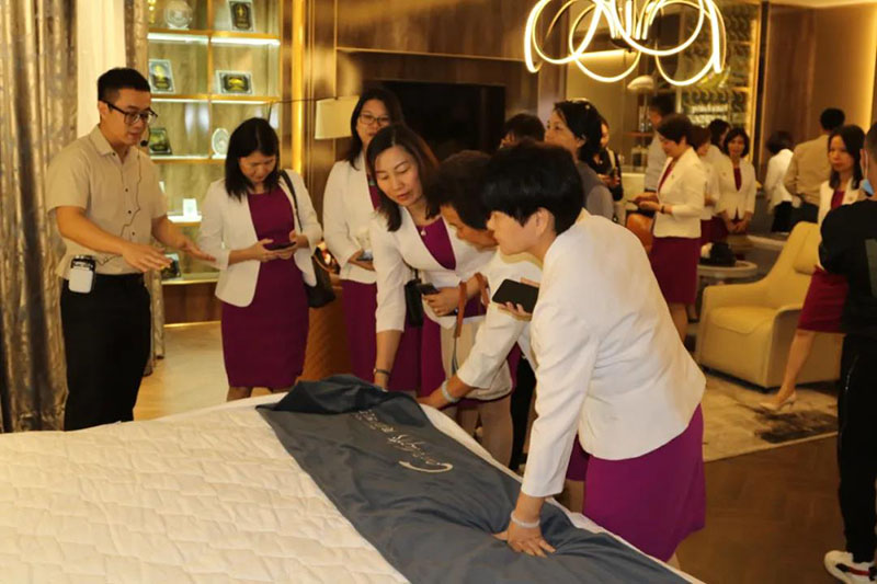嘉賓們感受著夢凱莎床墊帶來的柔軟舒適感,她們紛紛體驗(yàn)了夢凱莎床墊的透氣性與科技感,對夢凱莎的智能化系統(tǒng)有了更深入的了解。