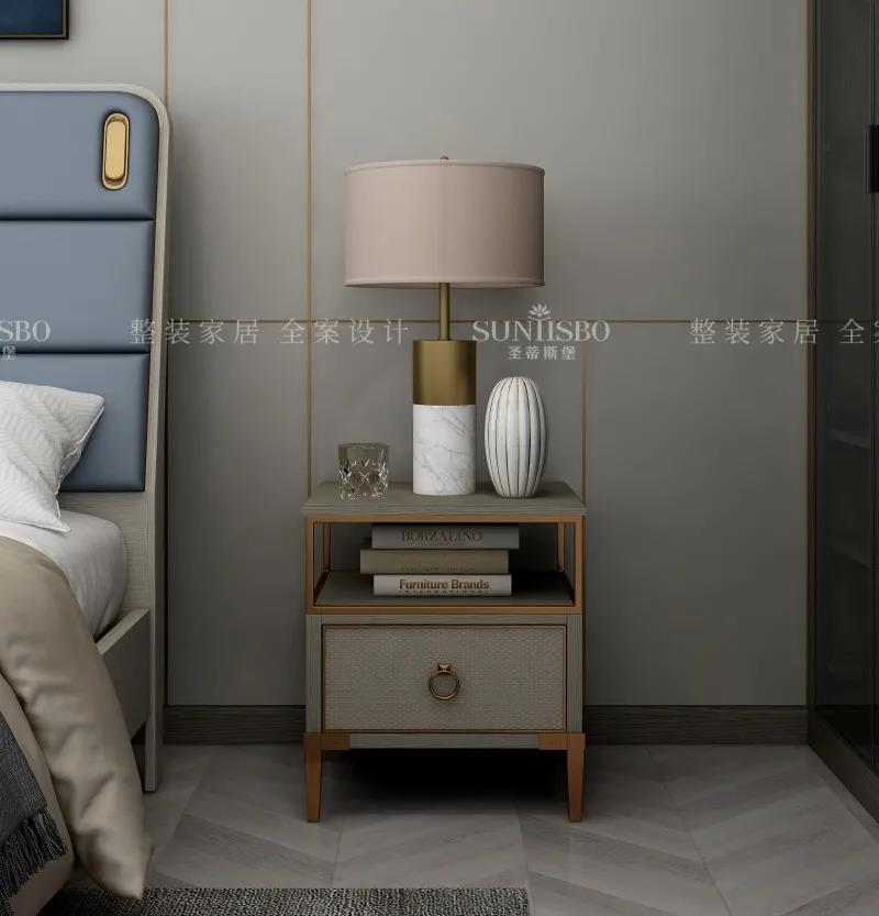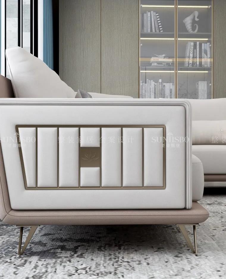 洛斯系列在現代時尚的基礎上還增加了許多輕奢的金屬元素,金屬元素在輕奢風里毋庸置疑的存在。為什么人喜歡戴耳環(huán)、戒指、項鏈等首飾?為什么衣服、鞋子、包包上都能看到金屬元素的身影?從時尚圈到家居界,金屬元素憑借其獨特的質感以及由內散發(fā)的高級氣質,有著強大的包容性,提升風格格調,增添時尚氣息。運用在家居中可成為整個空間的亮點,成為時下家居裝修的潮流趨勢,深受大家的喜愛。但是目前市面上采用金屬鑲嵌工藝的多數是在板木結合的基礎上,難度相對簡單易操作。在洛斯系列里,是在實木的基礎上進行金屬鑲嵌工藝,要求精準度非常高,誤差不得超過0.5毫米,不然就會對不齊。在洛斯系列中,桌子的四角與腿部、柜類門板,沙發(fā)腿部,茶幾支架,餐桌臺面,床品外框等都將金屬恰到好處地融入到空間的每個角落,讓空間擁有輕奢的高級感,提升空間的質感。將優(yōu)雅謙遜的都市精致感全面呈現,讓裝修冷中帶暖、沉靜精致,也向人們展示了一種精致的生活方式,更為整個家注入靈動氣息。