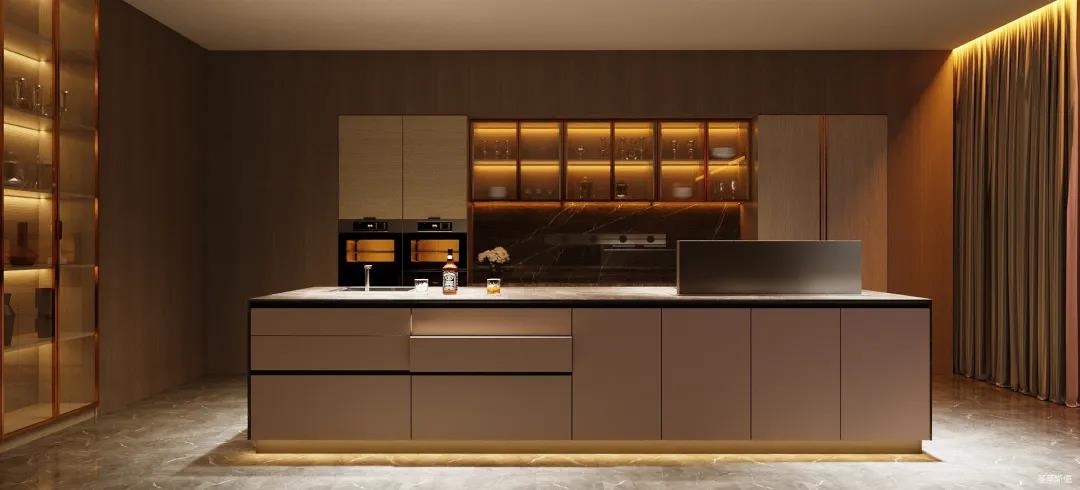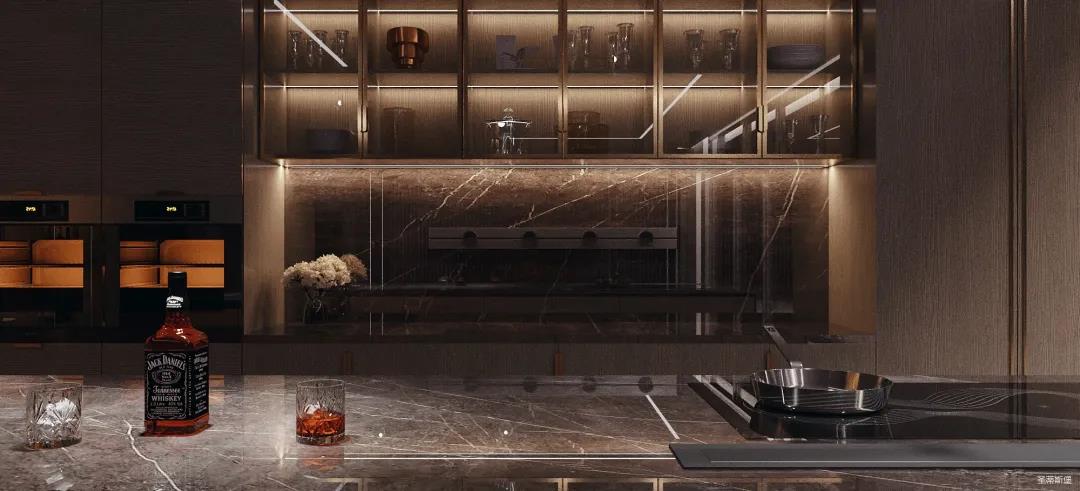 餐廚的極簡(jiǎn)也可兼具多元,以一字內(nèi)嵌式展開(kāi)的廚區(qū)收納柜,兼顧了從杯具、調(diào)料等廚用材料收納到廚電歸置動(dòng)線功能處理。在展示區(qū)域,玻璃隔板組合實(shí)木定制柜的表現(xiàn)形式,更是提升了空間的明亮度與寬闊感。
