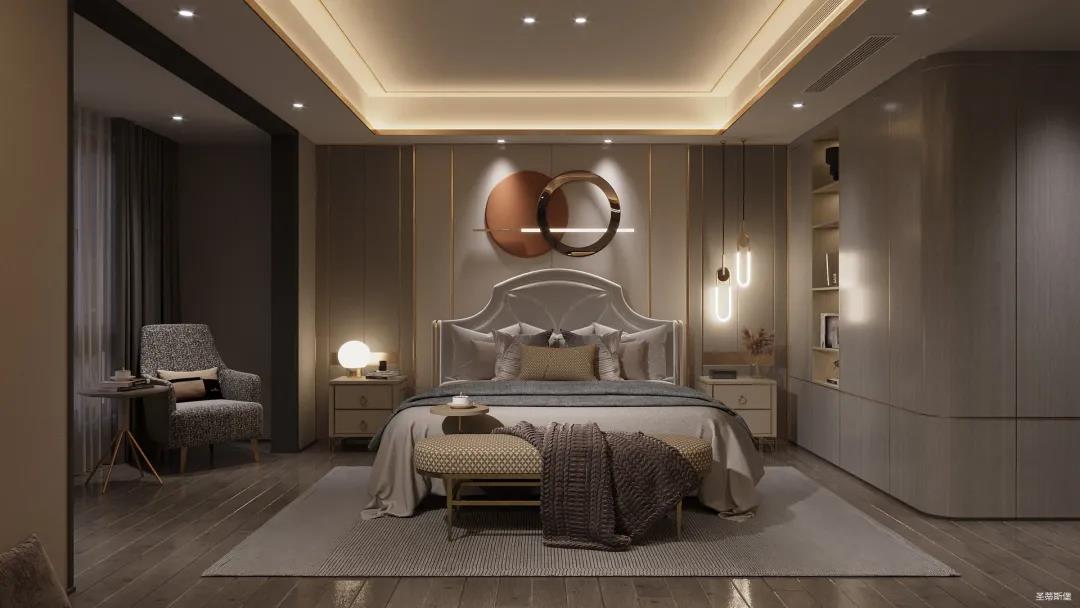 臥室空間整體以護(hù)墻板定制為主,整體設(shè)計(jì)注重空間簡(jiǎn)約、自然,沒(méi)有繁雜的裝飾。結(jié)合業(yè)主對(duì)理想家的想象,采用暖色調(diào)來(lái)襯托溫馨實(shí)感,延伸業(yè)主對(duì)家的定義,用最質(zhì)樸的木紋融合極簡(jiǎn)線條平鋪的形式,體悟自然的溫度,為都市生活帶去不一樣的體驗(yàn)感。