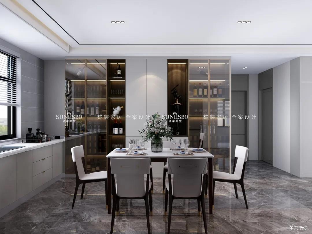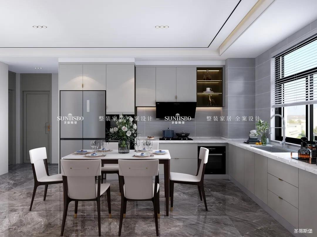 餐廚采用開放式布局,實現(xiàn)開闊明朗的公共空間,也提高了居家交流互動的便利性。減少不必要的物件,加上合理的設計,布局出和諧安全的居家環(huán)境。