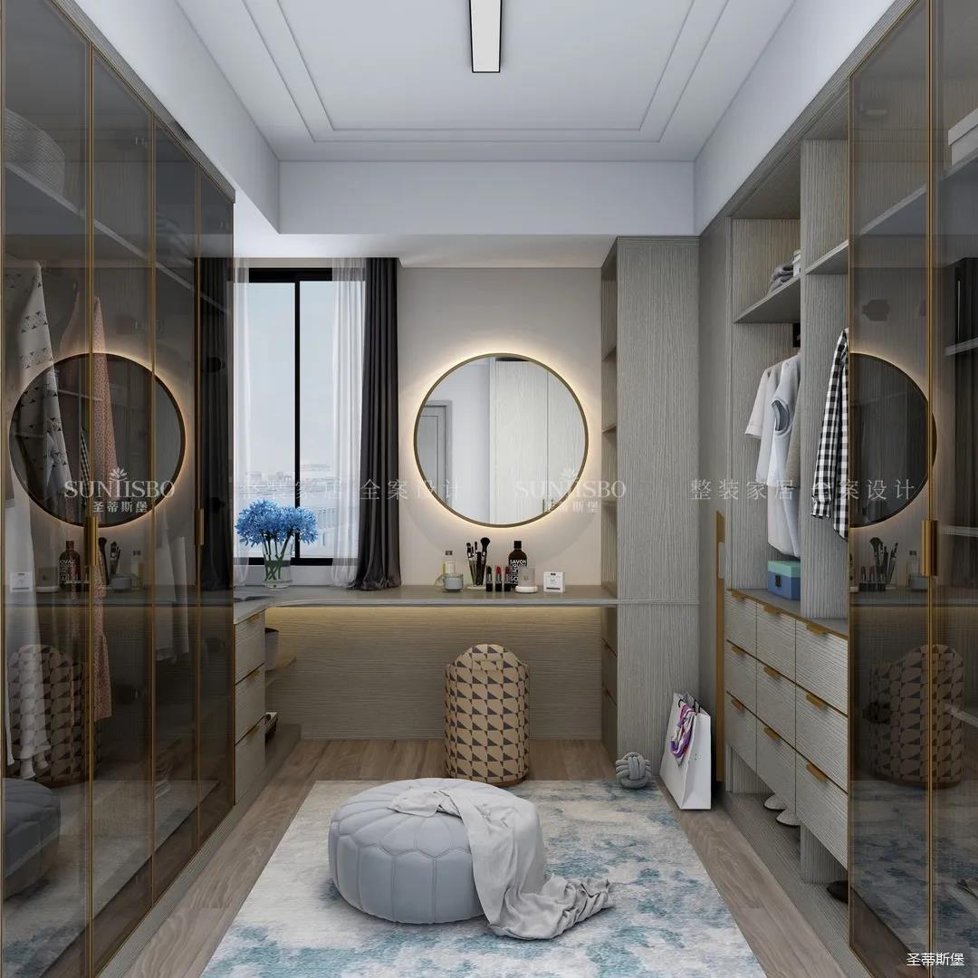 進入玄關區(qū)域就能感受到房主對時尚風格的偏愛,實木元素與簡奢金屬的碰撞,既有對材質(zhì)的甄選,又有現(xiàn)代簡奢的品質(zhì)感。穿衣鏡、換鞋凳、收納柜等藏漏有序的分區(qū),將屋主的生活歸納的井井有條。
