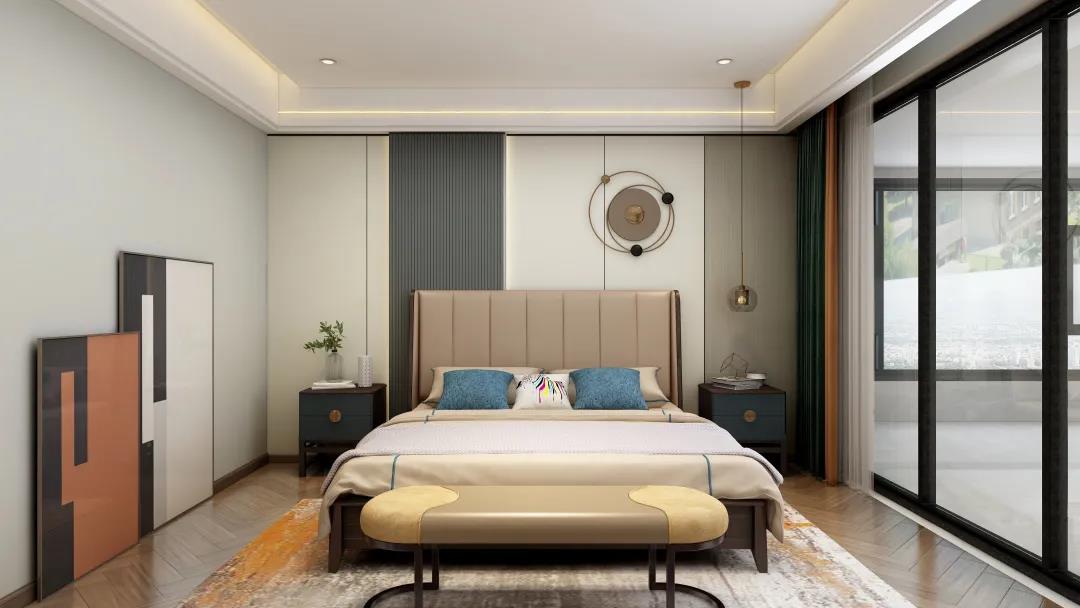 合理利用空間,這樣主臥便集臥室、衣帽間為一體,居住舒適度大大提升。營造了一個舒適度滿滿的私密空間。
