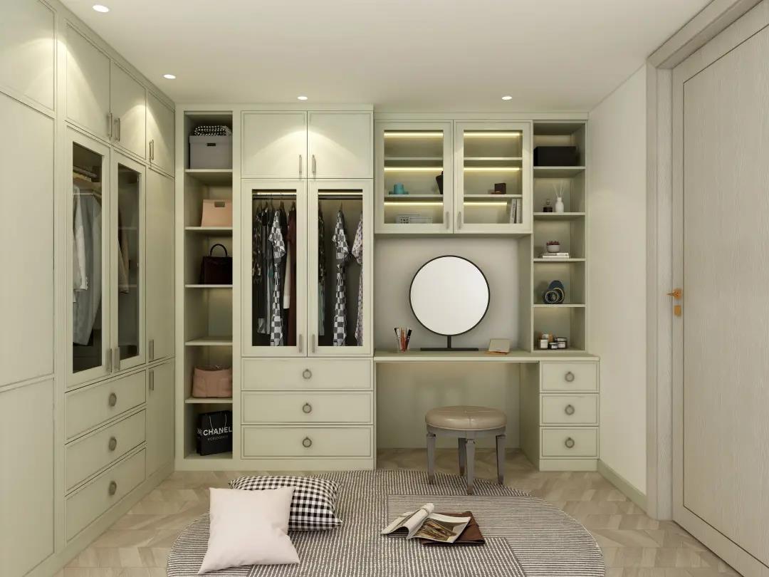 主臥衣帽間的衣柜結(jié)合妝臺一體設(shè)計(jì),