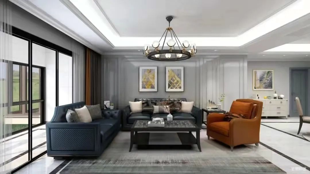 沙發(fā)皮色采用深淺不一的咖色拼接。讓空間顯得精致有質(zhì)感。在沙發(fā)的扶手邊框、底座,融入了愛馬仕橙,讓空間多了些靈動(dòng)的生活氣息。搭配簡(jiǎn)約單椅,給人一種視覺上的高級(jí)感。