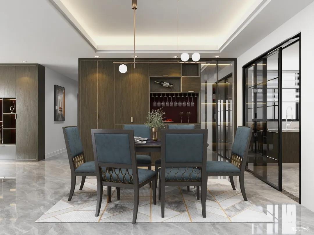 餐廳系統(tǒng)詮釋著材質(zhì)與工藝的質(zhì)感結(jié)合。一字型定制餐邊柜,實(shí)木飾面細(xì)膩?zhàn)匀唬尵筒涂臻g成為了高級(jí)情調(diào)的重點(diǎn)。明暗分區(qū)的設(shè)計(jì)構(gòu)造,順勢創(chuàng)造了更多的儲(chǔ)物驚喜。