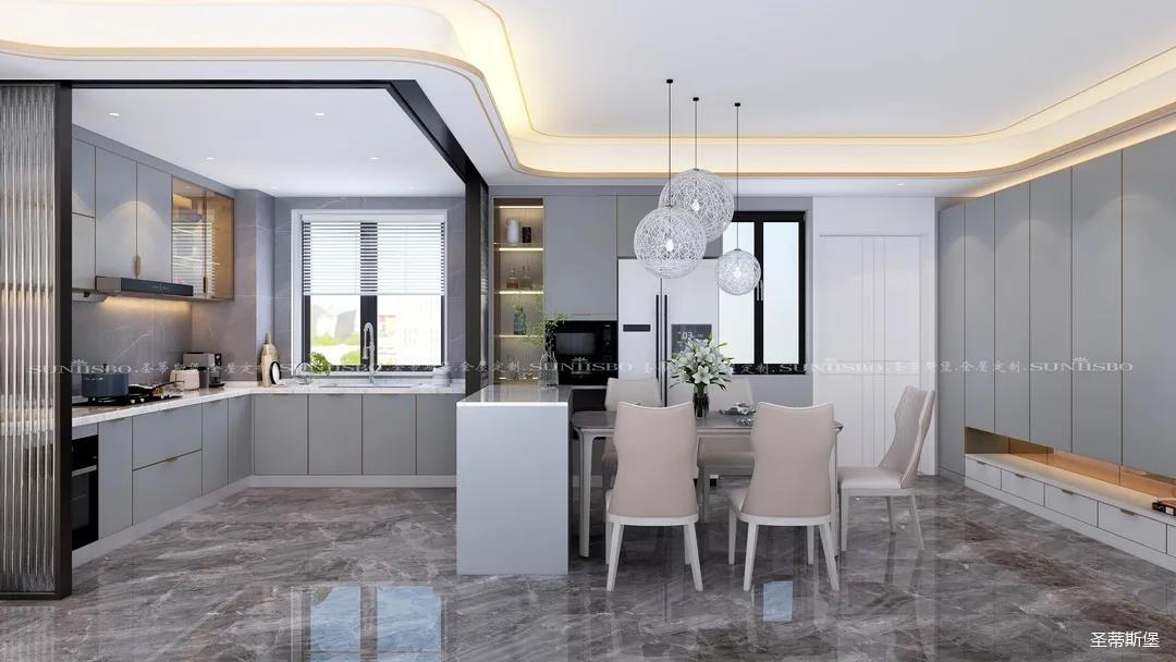 藏是漏的基礎。在社交軟件流行的當下,親情之間也逐漸越來越遠,推演到空間,餐廚之間需要的不再是實墻的阻隔,而是用長虹玻璃代替,開合之間,他的認真,你的可愛,都能在不經(jīng)意間盡收眼底。