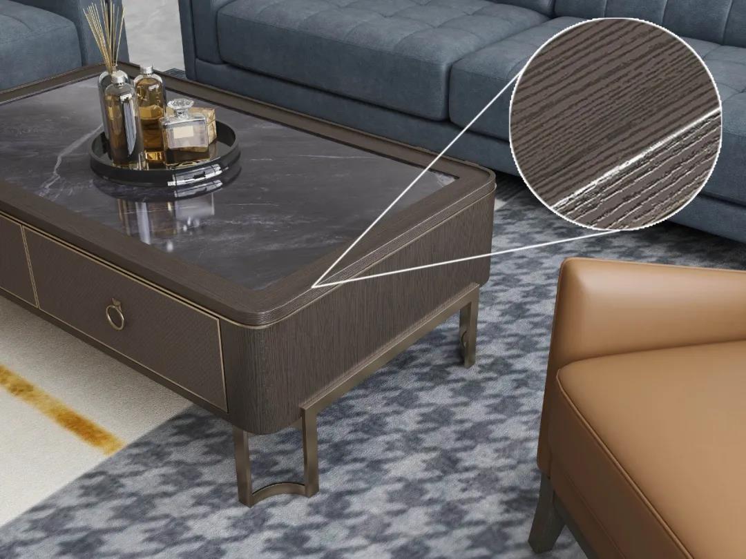 洛斯系列在現代時尚的基礎上還增加了許多輕奢的金屬元素,金屬元素在輕奢風里毋庸置疑的存在。為什么人喜歡戴耳環(huán)、戒指、項鏈等首飾?為什么衣服、鞋子、包包上都能看到金屬元素的身影?從時尚圈到家居界,金屬元素憑借其獨特的質感以及由內散發(fā)的高級氣質,有著強大的包容性,提升風格格調,增添時尚氣息。運用在家居中可成為整個空間的亮點,成為時下家居裝修的潮流趨勢,深受大家的喜愛。但是目前市面上采用金屬鑲嵌工藝的多數是在板木結合的基礎上,難度相對簡單易操作。在洛斯系列里,是在實木的基礎上進行金屬鑲嵌工藝,要求精準度非常高,誤差不得超過0.5毫米,不然就會對不齊。在洛斯系列中,桌子的四角與腿部、柜類門板,沙發(fā)腿部,茶幾支架,餐桌臺面,床品外框等都將金屬恰到好處地融入到空間的每個角落,讓空間擁有輕奢的高級感,提升空間的質感。將優(yōu)雅謙遜的都市精致感全面呈現,讓裝修冷中帶暖、沉靜精致,也向人們展示了一種精致的生活方式,更為整個家注入靈動氣息。