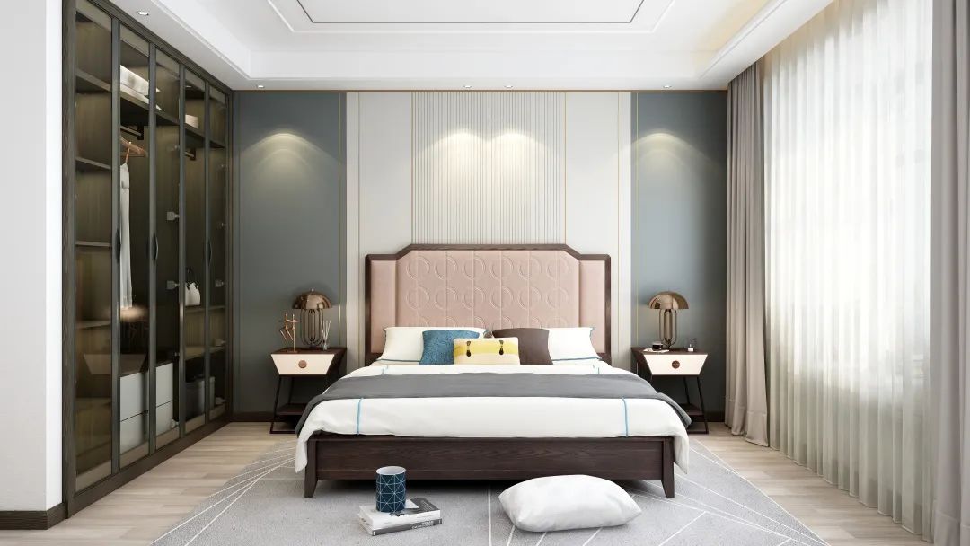 優(yōu)雅沉靜的霧霾藍(lán)床架,干凈利索的線條設(shè)計(jì),天然的皮革紋路,與原木色的墻面相呼應(yīng),純粹、樸實(shí),營(yíng)造出輕奢簡(jiǎn)約的氛圍,滿足了屋主對(duì)空間的無限暢想。